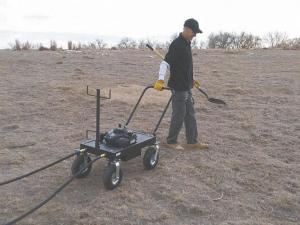 The cart makes it easy to move from hole to hole, he says, and with both hoses you can easily cover a 50-ft. radius. He recommends running the engine for 7 to 10 min. per hole. “Using both hoses at the same time doubles the efficiency,” says Enderson.
