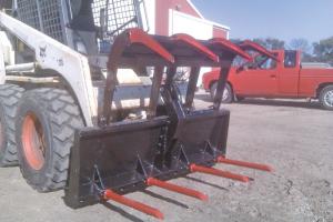 Dale McLaen turned an old manure grapple fork into a log lifting, industrial strength grapple. The old skid steer grapple fork was headed for the scrap yard when McLaen bought it for $200.