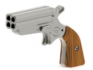 The Pocket Ace single-action pistol has a rotating firing pin that allows it to shoot 4 individual shots from its 2-in. stainless steel barrel.