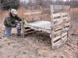 Pallets will eventually fall apart and need to be replaced, he adds, so it’s important to regularly check the area for nails and decayed wood and to build a new feeder when necessary. When possible, use pallets made of oak wood, which will last longer than soft pine or other wood pallets.
