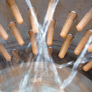 You first soak the bird in a 150-degree scalding bath for 15 sec., then drop it into the plucker for another 15 sec. The company says all feathers and dirt will be removed without tearing the skin or breaking any bones. A 1 1/2 hp. electric motor spins the base at the bottom of the tub at 300 rpm’s, while a built-in irrigation ring supplies water to help remove feathers from the bird and flush them through the discharge chute. The plucker base will stop spinning automatically when the tub is removed.