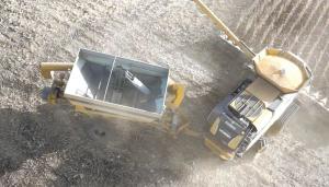 Combine Tows His Modified Grain Cart COMBINES Miscellaneous “I modified a used Orthman grain cart to pull behind my 780 Claas combine which saves me a good chunk of money during harvest because it takes the place of a second cart tractor and operator ” says Nebraska grain and cattle farmer Greg Kreikemeier “I can fill the cart with up to 550 bushels using the unloading auger from the combine When the field cart pulls alongside I can empty both the cart and the combine without stopping ” To configure the setup Kreikemeier built a special hitch on the cart using 2 long pieces of 3 by 5-in steel tubing and a single shorter 6 by 10-in rectangular tube The smaller tubing connects to the front drive axle of the combine and pulls the cart while the larger one connects to the rear axle under the straw spreader Kreikemeier estimates this setup puts about 4 000 lbs of tongue weight on his Claas 780 combine which runs a 16-row corn head The cart has its original 24 5 by 32-in tires that follow in the same tracks as the combine Grain is delivered to the cart by the combine’s tank unloading auger from the transport position Kreikemeier moved the auger’s potentiometer linkage to a different location so the combine’s computer thinks the auger never folds in Grain falls from the combine auger into a hopper on the front of the cart where a 16-in bubble-up auger moves it to the center of the cart The cart’s power comes from a 170 hp engine salvaged from a used IH 1460 combine It’s mounted on a box frame at the back of the cart with a fuel tank located between the wheels A drive line that operates whenever the engine is running powers the bubble up auger A 4-groove belt with a hydraulic tightener on the same shaft engages the cart’s side discharge auger Kreikemeier replaced the cart’s original 16-in discharge with a 20-in auger and a deeper sump that unloads the cart 50 percent faster “We can unload a full cart of about 550 bushels in 80 seconds ” Kreikemeier says “I can easily watch the cart activity on a monitor in the cab connected to cameras on the back of the combine and top of the cart ” The cart controls are on an electronic circuit board mounted in the combine cab programmable for bypassing the Murphy safety system on the engine “I’ve got it programmed to run the starter on the cart motor for 8 seconds start and stop the bubble-up and unloading augers and turn the cart motor off if I’m not using it ” Kreikemeier says The unload auger operation grain gate engine on/off and high/low throttle operate with four small wires from the cab to the cart Hydraulic power for the cart is from the combine with 2 1/2-in hoses “The pull-behind cart gives me a lot of flexibility during harvest because I can break through a half-mile long field and make it part of the way back before unloading to the cart pulled by the tractor ” Kreikemeier says “The $20 000 or so invested in the unit has certainly been worthwhile ” Go to farmshow com to see a video of the tow-behind grain cart in action Contact: FARM SHOW Followup Greg Kreikemeier 17313th Road West Point Neb 68788 ph 402 380-1402; gsk@danko net