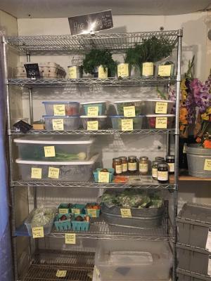 Millsap’s large storage cooler provided an ideal space for selling produce. Built off the end of one of their greenhouses, the storage cooler is made from 8-in. thick insulated foamboard recycled from an old warehouse. The cooler is powered by a Coolbot device that connects to a window AC unit. The Coolbot (www.storeitcold.com ) “tricks” the AC unit into running as cold as a refrigerator and keeps the cooler in the high 30’s and low 40’s, depending on the temperature outside.