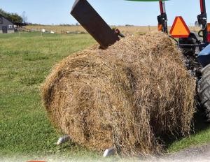 “The Round Bale Knife was developed by a local farmer for his own use, and now he makes them for us,” says Joe Wingert, Ackerman’s Equipment and Rental. “The knife works equally well on 4 by 4 and 4 by 5-ft. big round bales. It will cut any bale, dry or wet.”