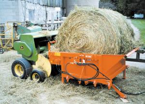 Also available is the larger model DT 120, which can turn large square bales - up to 4 by 4 by 8 ft. - into small square bales. The DT 120 can also handle 4-ft. wide round bales.