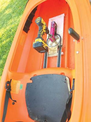 “It was a cheap kayak to start with that has a flat spot in the back so it was perfect to mount a motor,” he says.