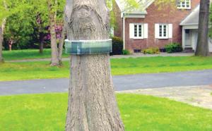 Bugs caught by the Bug Barrier tree band are out of sight beneath the band as is the adhesive that catches them.