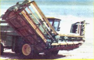 Greg says that in 3,700 acres harvested last fall, the added weight of the 40-ft. header did not put undue stress on the 8820. “They seemed to be built for each other. There are still improvements to be made, however,” he told FARM SHOW. “I’ll probably put separate drives on the reels. Also, this model doesn’t fold to 90 degrees because we didn’t need that much fold for our operation. But the basic design will easily adapt to folding the wings to right angles.”
