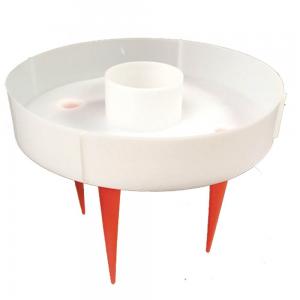 The plastic unit has a hole in the center for the plant to grow through, and a rimmed area that holds water and leaches it through four spikes with tiny holes on the sides that go directly to the plant’s roots.