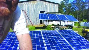 Since the storms, Mull has gotten requests from people to custom-build solar power systems for them. He also mounts solar panels on golf carts and on trailers. He uses his golf cart to charge his electric chainsaw when he gathers firewood, and he has two panels on his pickup.