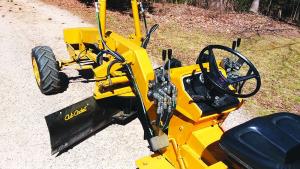Smith has decked the Cub Cadet motor grader out with a full set of lights for visibility and safety. “The lighting switch turns on headlights ahead of and behind the blades and lights to the rear,” he says. “If the motor grader is going forward, the rear lights are in red. If the grader is put in reverse, the rear lights turn white for greater visibility.”