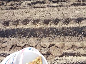He works up the ground and uses discs to build up a bed about 12 in. high. This is raked down to about 6 in. high and 16 to 18 in. wide.