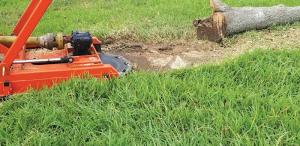 What sets the Tree Hog apart from other machines is that you set it next to a tree or stump and the cutting wheel feeds hydraulically into the tree. “Other machines just have a wheel on back and you drive into the tree. The Tree Hog gives you a lot more control. You can manipulate the force applied as needed,” says Sikes.