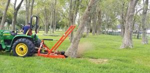 The Houston, Texas-based company keeps the cost down by selling direct to customers. There are two 3-pt. mounted pto-driven Tree Hog cutters with hydraulically positioned 40 or 48-in. dia. cutting wheels made from 3/4-in. A-36 steel plates. Both models feature extra heavy-duty gearboxes, welded steel skirts to prevent flying debris, fully enclosed friction disk clutches, and a double-acting hydraulic cylinder on 7-ft. push bars to safely direct taller trees away from the operator and tractor.
