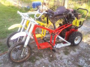 Smith built it while spending time on his mother’s farm, and she said he needed to do something with all his old stuff. Instead of trashing it, he took off the front of a snowblower and the backs off two minibikes and bolted and welded them together. He added a pedal connected to the 11 hp. Briggs and Stratton engine. Lining up the frame to the snowblower body was tricky and he had to add more bracing to beef it up after bending the frame. Smith also tried revving it up with a bigger pulley to go faster - 40 mph. But after flipping it a couple of times he downsized the pulley.