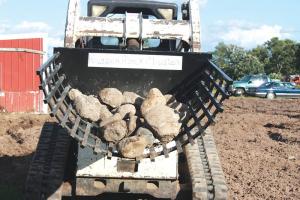“Our soils are a sandy clay loam, and our rocks are thick - basketball size and smaller are the most common, but we do run into 2 and 3-ft. rocks. The bucket really stands out when it comes to the big rocks because it can be used somewhat like a crowbar. Using the bucket and the leverage of hydraulics you can easily pop a 2-ft. rock that’s completely buried without damaging the bucket.