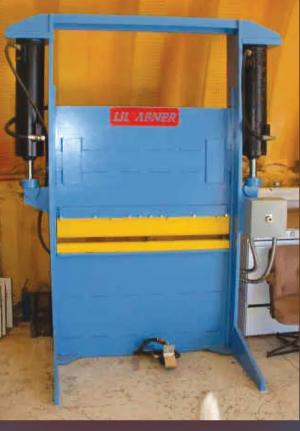 100-Ton Shop-Built Press Brake Pat Burrington says he couldn’t justify spending a bundle of money on a high-capacity press brake for his welding shop so he built one himself “I built it several years ago when steel wasn’t nearly as costly as it is today so my investment was probably a third of what it would’ve cost to buy one ” Burrington says He made the frame and side pieces for the 100-ton brake using 40 ft of 12-in wide by 1-in thick flat bar steel stacked vertically for added strength “I water jetted all the critical pieces like the slides and notches then flux core welded it all together ” Burrington says He bought the 7-in dia press cylinders hoses and hydraulic pump from the Surplus Center in Lincoln Neb A friend gave him a 3-hp electric motor and pump which produces 2 500 psi of working pressure to operate the press “I didn’t think I could fabricate the upper and lower dies so I bought those from a manufacturer’s rep I met at the Fabtech trade show in Chicago Those worked perfectly and I’ve used them to bend all types of metal even water flumes and custom high-strength cardboard boxes I even made a set of dies to punch in/out the pins and bushings on my Deere MC crawler track instead of having the dealer do it ” Burrington says For a total cash outlay of about $4 000 plus his labor Burrington says his custom-built press brake was a worthwhile investment that’s paid for itself many times “Better yet if anything goes wrong which it rarely has I know exactly how to fix it and don’t need to call for repairs ” he adds Contact: FARM SHOW Followup Pat Burrington Rapid Creek Cutters 130 Garnet Dr Hwy 93 Stevensville Mont 59870 ph 406-642-3155; www rapidcreekcutters com