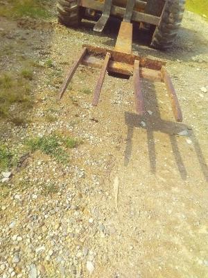 The faster way involved fabricating a long fork with a 6-ft., 2 by 6-in “handle”. The handle slips over a forklift fork on his skid steer. The business end of the fork is a 2-ft. wide spread of 1 1/4-in. wide, 28-in. long tines on 8-in. centers. The tines were left over from a front-end loader manure bucket.