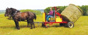 On his farm, Mummery typically relies on heavy horses to haul bales and can handle a maximum of about 60 1,200-lb. bales in one day, averaging 10 to 12 bales per hour. (With light horses, he can haul up to 45). The reason this record isn’t higher is that the batteries on the electric winch eventually wear down and require recharging, which can prematurely end the workday.