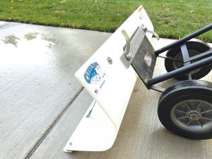 The plow attaches quickly and easily with a stainless-steel bar and two handles to the hand truck lift plate. Both models have options for 14 or 18-in. wide hand trucks and the pushers come in 24 and 36-in. widths. They also have replaceable 1 1/2-in. curved cutting edges that slide over sidewalk cracks.