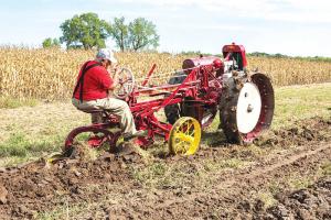 Book’s tractor, the Orchard Model, is one of three known to still exist in the U.S. It has two large steel wheels, is powered by a 4-cyl. engine, and pulls trailing implements that the operator rides on and controls. “The tractor was designed to work fields, cultivate row crops and replace horses,” Book says, “and it did a darn good job. They marketed it across the country, in Canada, Mexico, Spain and Australia. I’ve used my tractor to pull a 2-bottom plow, a disk, and other implements.”
