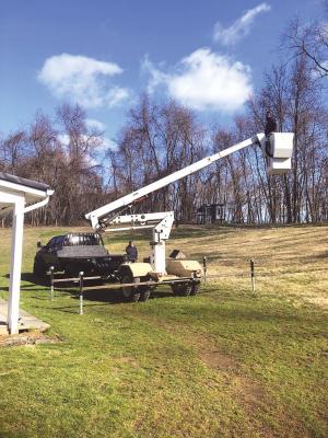 The bucket truck was scheduled to be scrapped. However, the lift with its 37 ft. working height, was still in good shape and equipped with auxiliary hydraulics. Hardman spent about $1,000 on it. The only repair needed was to rewire the boom unit.