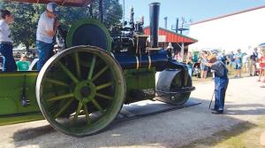 Steam Engine Rolls Out Printed Images TRACTORS Antiques One of only four 1905 Kelly Springfield steam engines known to exist anywhere in the U S may be the only steam engine producing printed images It’s a “believe-it-or-not” demonstration that takes place 4 days every year over the Labor Day weekend at the Midwest Old Threshers Reunion in Mt Pleasant Iowa The giant steamer’s owner Dave Gross and his grandson Russell Heerdt use the rig to “roll over” a large image etched on linoleum and in the process transfer that image to paper “The process sounds bizarre to anyone who hasn’t heard of old-time printing presses powered by small steam engines ” says Tom Wenstrand who’s lived in the area for many years and attended several demonstrations “The 12-ton roller is just a much larger version of the little presses in the show’s Printer’s Hall ” While show volunteers produce three daily versions of “The Thresher’s Bee” paper with small steam-powered presses others work on a much larger project for the huge steam engine Six months before the show volunteer artists start their work using hand tools to carefully etch an image in a large piece of linoleum that sometimes measures 3 ft by 4 ft The process is extremely difficult because the entire image including the lettering must be done in reverse One volunteer laughingly says their 6-mo process can be done by a smartphone “selfie” in seconds The artists produce several images a year Each one is etched to a precise depth on linoleum to hold just the right amount of ink The big steam engine is stored at the show and Gross or Heerdt drives it to the demonstration site where its 4-ft wide front wheel is scraped and wiped clean of any debris A large board placed in front of the wheel is swept clean layers of paper are put on and the inked linoleum is laid on top The drivers slowly inch the 12-ton steam engine roller over the linoleum then back it off Volunteers lift the linoleum off the paper as wide-eyed show visitors see the image revealed Heerdt says they roll 20 to 25 prints a day over the 4-day show Wenstrand says a person must see the demonstration to believe it produces such amazing prints done by outstanding artists After drying the prints are on display and can be purchased by visitors for $50 to $100 each with proceeds going back to the Printer’s Hall Most posters are signed by the artists and pre-sold before they’re printed Heerdt says that everyone who sees the demonstration leaves with several cellphone pictures and an amazing memory Contact: FARM SHOW Followup Old Threshers Reunion 405 E Threshers Rd Mt Pleasant Iowa 52641 ph 319-385-8937; www oldthreshers com