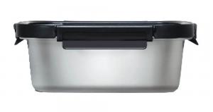 The containers come with red, green, or black lids that have a silicone vent for steaming and cooling. They’re available in round, square, and rectangular shapes of various sizes.