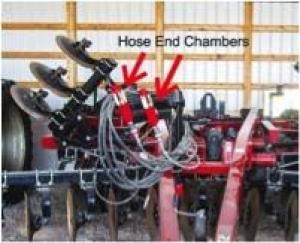 The Hose End Chamber (HEC) makes hydraulic pressure buildup in hoses (when unhooked) a thing of the past. The HEC prevents pressure when rising temperatures cause hydraulic oil to expand. People often don’t know what the problem is, only that sometimes it’s hard to reconnect hoses.