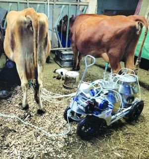 The new milker is powered by an aspirator vacuum pump with a regulator and gauge with arr
