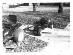 I'm sending along a photo of an offset pull-behind mower I built last summer. I started with an IHC 44-in. deck, the rear wheels and tires off an old Sears electric tractor, and a new 12-hp. Briggs & Stratton engine. We fabricated the frame from 1 by 2-in. steel tubing and made the caster assembly for the front wheels. The offset tongue is adjustable for different width tractor mowers. (John Payne, 522 E. Fourth Ter., Lees Summit MO 64063)