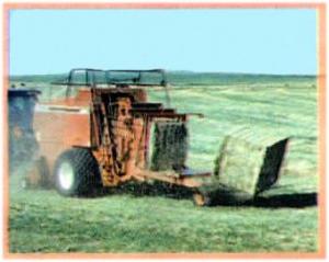 The turntable is 7 ft. square and built of box tubing and sheet metal: It's fitted s with a pivoting arm along one side that's controlled by a 2 1/2 by 8 in. hydraulic i cylinder. The mechanism, which is con trolled by the baler's on-board computer, turns the 4 by 4 by 8 1-ton bales 1/4 turn sideways as they're pushed off the table.