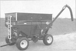 The auger is positioned above the grain line, eliminating spattering of grain or fertilizer. A "sump designed" intake allows continuous flow and excellent clean-out. A 13 ft. long unloader with a 6 in dia. steel auger, stabilizer bar, cable winch assembly, downspout, adjustable hopper and hydraulic motor valve and hoses, sells for $965; a 15 ft. long unloader sells for $$990.Loaders equipped with brush augers sell for $1,245 (13 ft. long) and $1,320 (15 ft. long).