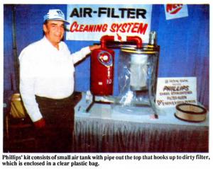 "After the filter is clean I use a shop vacuum to remove any loose dirt on the filter. The air tank can also be used as a portable air tank for filling tires." Phil-lips says he expects the air filter cleaning kit to sell for about $300 (Canada).