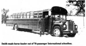 Smith made the horse-hauler out of a 78-passenger International schoolbus that he bought for $800. The state inspected bus is legal for road use.