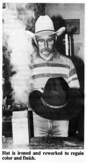 Next, the hat is ironed and the felt re-worked to regain color and finish. Since no two hats me alike, this step requires extensive handwork. Finally, the hat brim is pressed and a new leather band, silk liner and trim or ribbon is added and the hat goes through a final inspection.