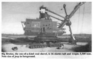 Big Brutus did not dig coal. The huge bucket removed rocks and dirt over coal seams. Then it would roll back as coal strippers moved in.
