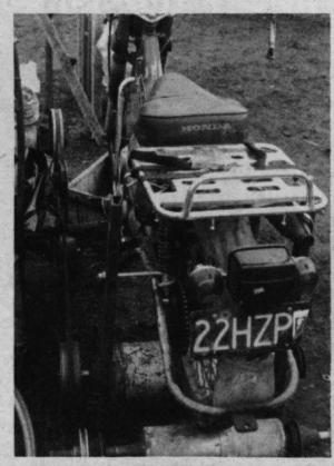 Portable Power Unit MISCELLANEOUS EQUIPMENT Miscellaneous 9-5-25 "It gives us a portable drive unit we can haul around the farm," says Bill McLennan, Cambridge, pleased with the power unit he drives with his motorcycle, pickup or car.