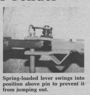 "Key to this new Hitch-Pin Tender is the spring-loaded lever. It's always in place above the hitch pin, preventing the pin from jumping out. The tractor driver can't forget to use it," says Jake Vande Hoef, spokesman for the manufacturer, The Tender Co., Rock Valley, Iowa.