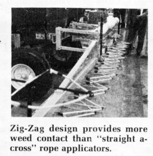 "We use special 112 in. nylon rope that draws out the chemical evenly," says Porter. "Just a few drops is enough to kill most weeds. One of the advantages of the rope wick is that its wastes less chemicals."