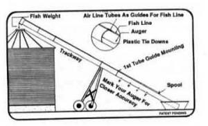 Kit includes fish line, a fish line weight, pieces of air hose that serve as guides for the fish line, and adhesive patches to secure the air hose to the auger. The line is threaded through the guides to the top of the auger. The weight is attached to that end of the line. A 1/4-in. washer attaches to the bottom end of the line and hooks onto an L-shaped hook. You mark the auger in 2, 4, 6, and 8-ft. intervals. To check grain level, you let the weight fall down into the bin. When the weight hits the grain, you just see where the washer is on the scale marked onto the auger. If it's at the 4-ft. mark, grain is 4 ft. from the top of the bin.