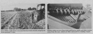 "Preventing plug-ups and sorting out rocks that get into the machine are the two biggest obstacles to perfecting the machine," says Miller, adding that corn roots also pose a problem in the spring. "When the ground is hard, stalks break off and roots stay in the ground. But, in the early spring, when the ground is soft, roots pull out of the ground, causing some plugging problems. We can solve the problem by narrowing-up the rake in front to slow down the flow of material through the harvester."