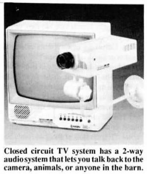 "It lets you see and hear what's happening in the barn and has a 2-way audio system so you can actually talk back to the camera and the animals or anyone in the barn will hear you," says Ed Mueller of Mueller's Audio Visual, Davis, Ill., about his "affordable" new closed circuit TV system designed for use on farms.