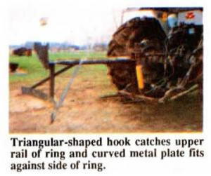 'We built it because I had a bad back but everyone likes it because you don't have to get off the tractor to feed a bale," says Larry Jeffries, Horse Cave, Kent., about his twoin-one bale handler that also puts the feeder ring around the bale. He had help building it from William Jeffries.