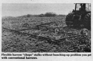 Low-cost stalk shredding - Farmers who've tried it say the Fuerst harrow tears up corn stalks without tearing up the ground, and without the "bunching up" problem you get with stiff-tine or spike-tooth harrows. In ridge-till corn, it clears the tops of ridges, eliminating volunteer corn and weed seeds in the row and removing trash for better in-the-row herbicide performance.