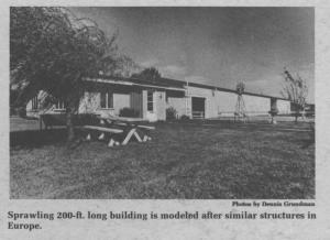 The structure (38 ft. wide and 200 ft. long) represents a dream come true for Francis Tewell, recalling memories of farms he saw while stationed in Europe.
