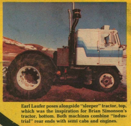 Simonson got the idea for the king-size tractor-truck when he saw photos of a semi-truck tractor in North Dakota built by Earl Laufer who farms near Hettinger. Laufer operates three truck-tractors and has helped neighbors build their own, too. Simonson, who's just 22 years old, was intrigued with the idea and went searching for the right combination of machinery. He found the International truck equipped with a rebuilt engine at a salvage company in Billings. He bought a 70,500-lb. industrial scraper rear-end in Great Falls (it's the same rear end used in Big Bud tractors). A local welder constructed a custom-made drive shaft for the tractor. He's worked on the tractor since last spring, with help from his father Barney, and used it in a test run on 70 acres last fall. This winter he put on the finishing touches and hopes to use it full time this spring.
