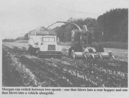 His self-propelled harvester has a hopper on back that he can blow silage into when there's no truck or wagon alongside. The flexibility to maneuver more freely in the field means Morgan almost never has to stop chopping silage. Morgan and his father, Willard, and brother, Robert, who comprise Morgan Forage Harvesting, plan to bring their prototype to market in a couple of years.