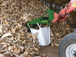 Bagwiz makes selling quantity firewood, wood chips, shredded bark or even sawdust fast and easy. The new bagger from Great Britain can be mounted on any front-end loader or skidsteer.