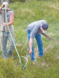 Cammack had assistance from the local NRCS in developing the Waterjet Stinger. It uses a gas-powered, high-pressure pump. The Stinger component is a 6-ft. hollow pipe with a T-handle and a stainless steel nozzle. The unit is effective and fast.